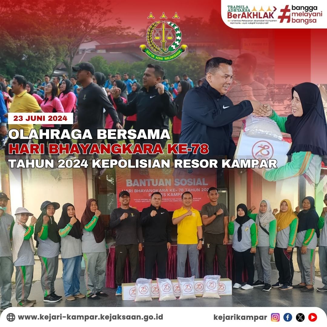 Kepala Kejaksaan Negeri Kampar Bapak Sapta Putra, S.H.,M.Hum menghadiri kegiatan olahraga bersama Hari Bhayangkara ke-78 tahun 2024 yang berlangsung di Lapangan Pelajar Bangkinang.