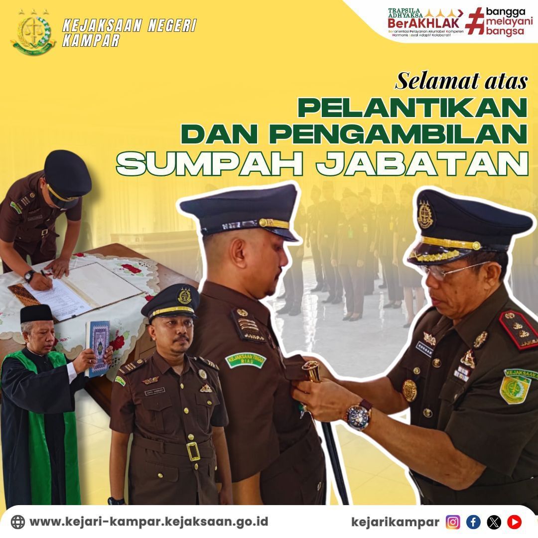 Selamat atas Pelantikan dan Pengambilan Sumpah Jabatan Kepala Seksi Pemulihan Aset dan Pengelolaan Barang Bukti Kejaksaan Negeri Agam, Bapak Haris Jasmana, S.H., yang sebelumnya menjabat sebagai Kepala Subseksi Penyidikan Tindak Pidana Khusus Kejaksaan Negeri Kampar.