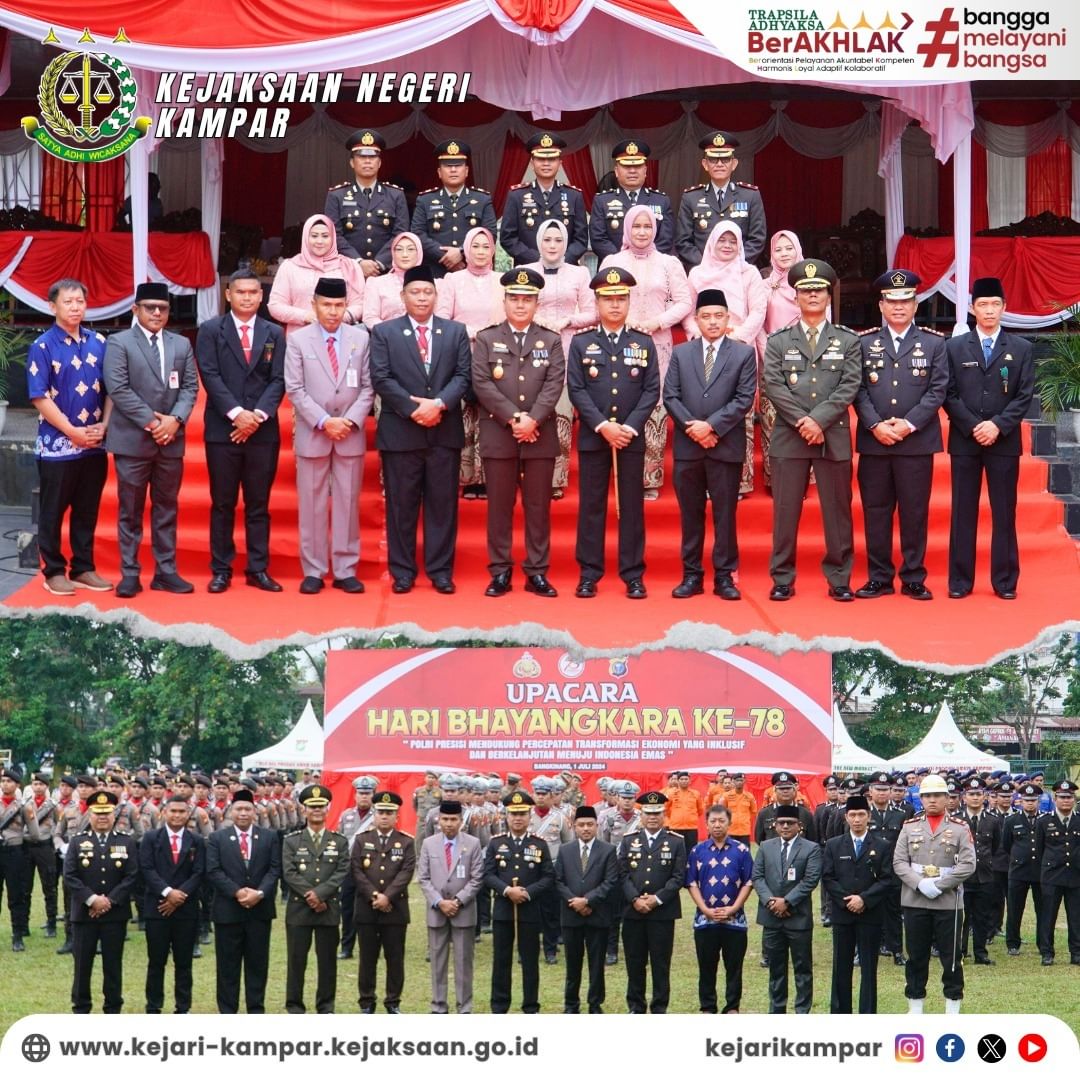 Kepala Kejaksaan Negeri Kampar Bapak Sapta Putra, S.H.,M.Hum. mengikuti Upacara Hari Bhayangkara ke-78 Tahun 2024 yang bertempat di Lapangan Pelajar Bangkinang Kota.