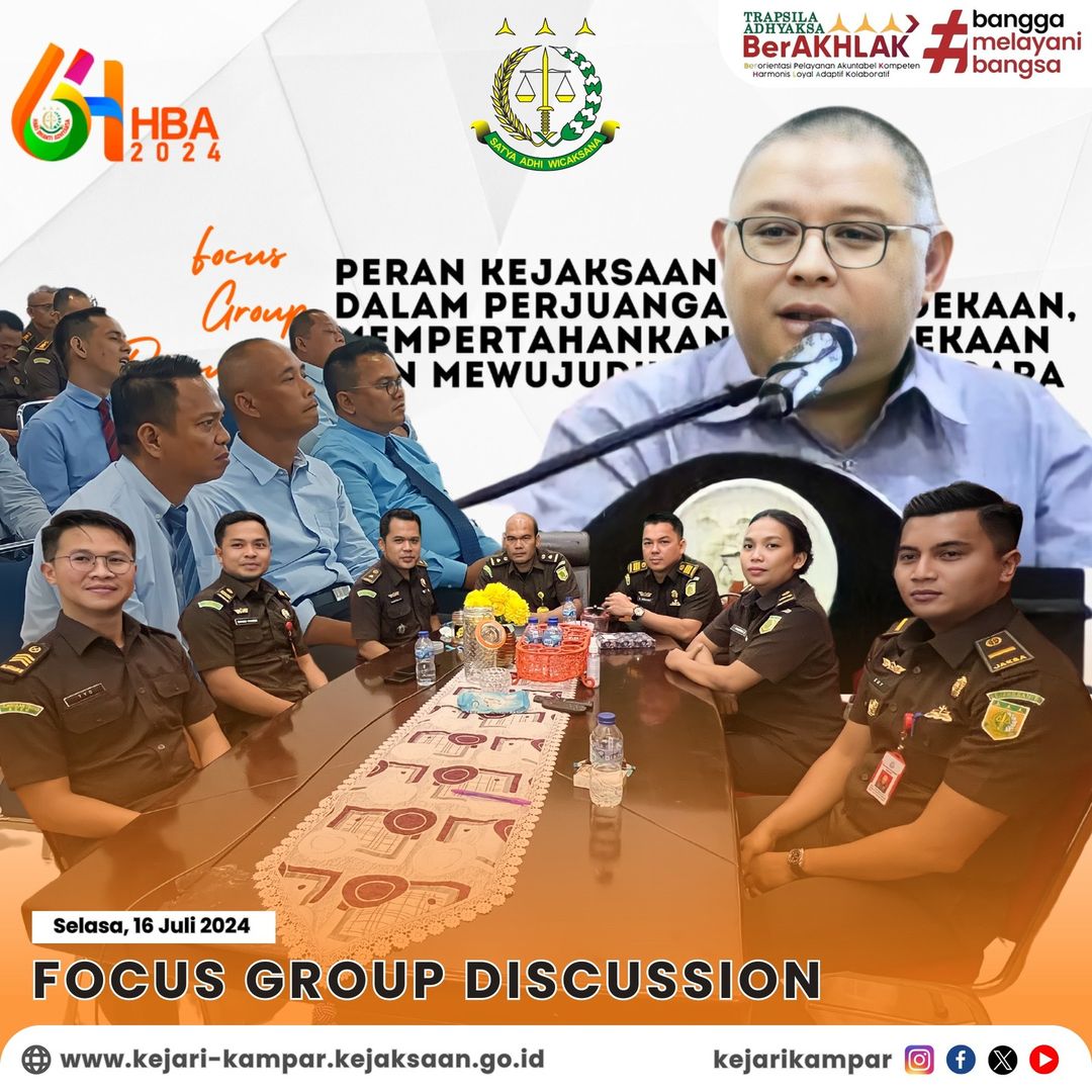 Kepala Kejaksaan Negeri Kampar diwakili oleh Kepala Sub Bagian Pembinaan, Bapak Tabroni, S.H., beserta Kepala Seksi Tindak Pidana Khusus, Bapak Marthalius, S.H., M.H., Kepala Seksi Pengelolaan Barang Bukti dan Barang Rampasan, Bapak Rahmad Hidayat, S.H., mengikuti zoom meeting FOCUS GRUP DISCUSSION (FGD) dengan Tema “Peran Kejaksaan dalam Perjuangan Mewujudkan Kemerdekaan, Mempertahankan Kemerdekaan dan Mewujudkan Tujuan Negara”.